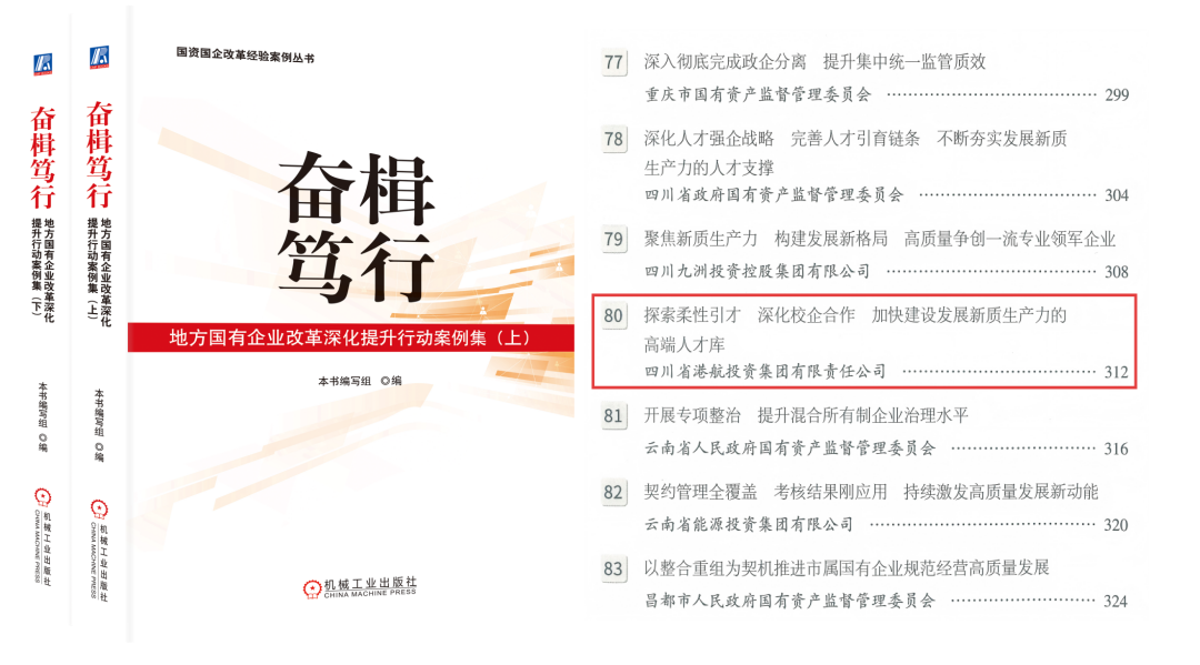 近日,国务院国资委主编的国资国企改革经验案例丛书《奋楫笃行:地方国有企业改革深化提升行动案例集》正式发行,省港投集团改革案例《探索柔性引才 深化校企合作 加快建设发展新质生产力的高端人才库》成功入选,成为四川省入选的重点案例。