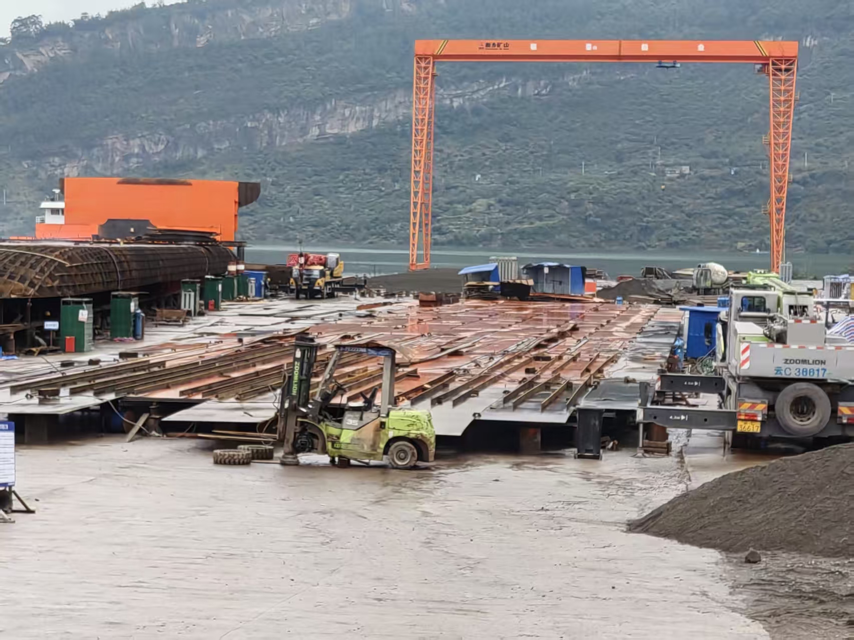 在云南省昭通市绥江县会仪镇船舶施工现场,长运公司在刚刚完工第1艘6000吨级金沙江“甲醇-柴油”双燃料新能源自卸式货运船舶的基础上,同类型的第2艘船舶接续开工。该船总长106米、型宽17.26米、型深6.1米,配置双燃料新能源动力系统及自卸系统,可有效提高作业效率,降低人工成本,减少污染物排放,实现效能与环保的双重提升。